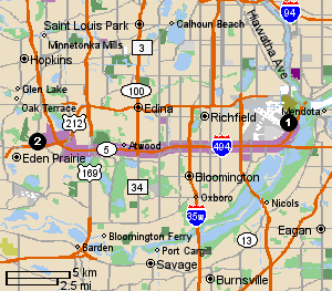 13 miles west from the Minneapolis-St. Paul International Airport.